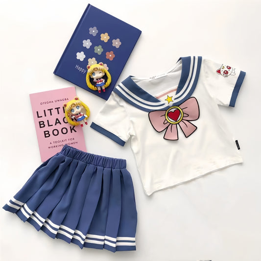 Kids Girl Summer Anime Sailor Moon Suit Pleated Skirt Two-Piece Set