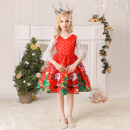 Girls Lolita Princess Dress Christmas Short-Sleeved